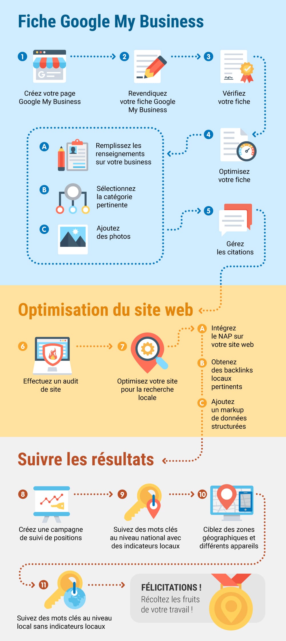 Google est un algorithme. Pour que votre fiche Google My Business ressorte il faut donc l’optimiser au maximum. Pour commencer, le titre de votre page doit être optimisé, court, se référer exactement à votre activité et contenir des mots clés. Dans un second temps il est important de bien remplir votre fiche Google My Business dans la rubrique « info » afin d’offrir un maximum d’informations à vos clients et à l’algorithme. En outre, la réputation de votre site est importante ! Si votre site est bien référencé et qu’il contient de nombreux backlinks (c’est à dire des liens externes provenant d’autres sites) Google estimera que votre site à une bonne autorité que votre offre est pertinente et il vous poussera au sommet des recherches. Finalement, les choses les plus essentielles dans votre fiche Google My Business se sont les avis clients, alors récoltés en ! Plus vous récoltez d’avis plus vous avez la chance d’être bien classé, la note bien sûre est un critère déterminant, mais la qualité des avis également !
